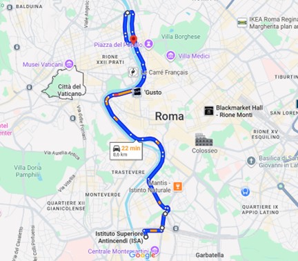 - Once arrived at Piazzale delle Belle Arti, turn left on Ponte del Risorgimento and then turn left on Lungotevere delle Armi (do not take the underpass);